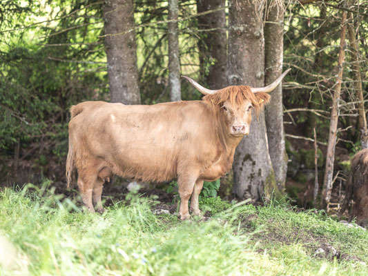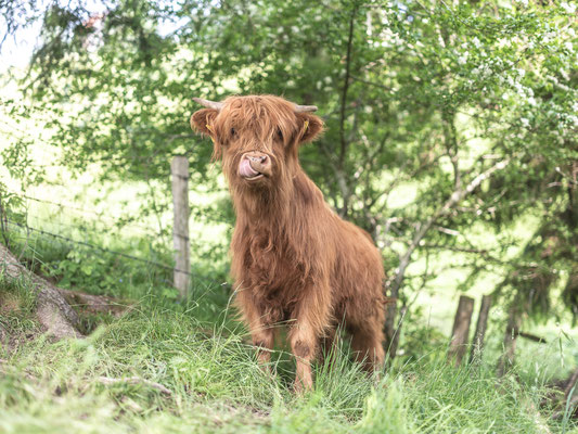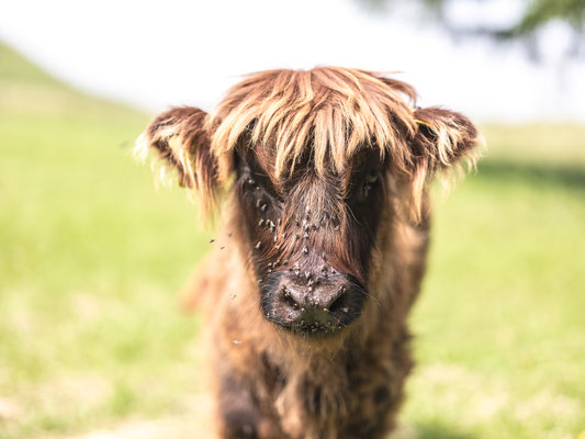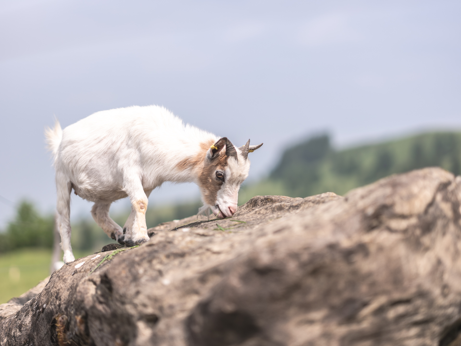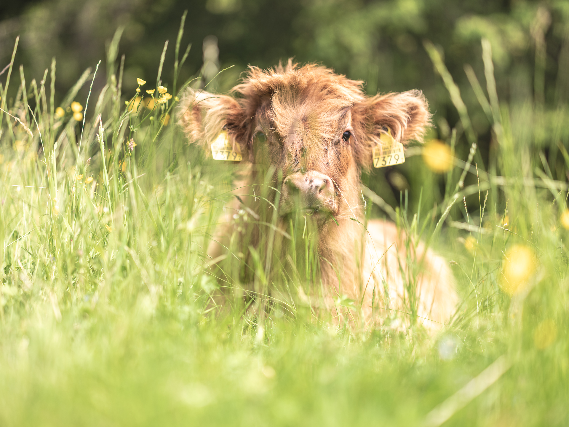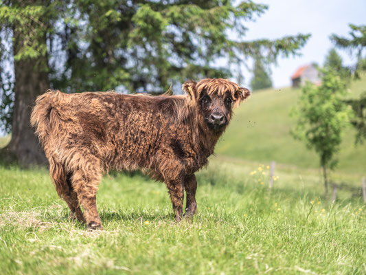 Neben unseren zutraulichen Zwergziegen, zwei gemütlichen Eseln, Brahma-Hühnern, Gänsen, Schweinen und Schafen fühlen sich hoch über Appenzell vor allem unsere schottischen Hochlandrinder pudelwohl. Kein Wunder: Die Mutterkühe, Rinder und der Stier geniessen gemeinsam mit den Schafen täglich die frische Luft, das saftige Gras und die Aussicht auf den Alpstein.