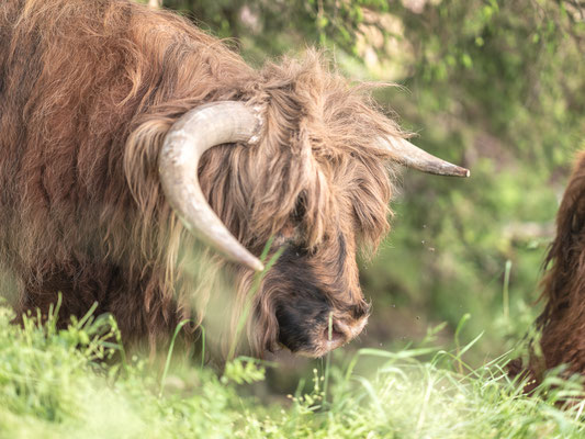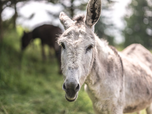 19 Hochlandrinder, 20 Schafe, 6 Schweine, 2 Zwergziegen, 2 Esel, 2 Gänse, 3 Katzen, 9 Hühner und 1 Güggel.